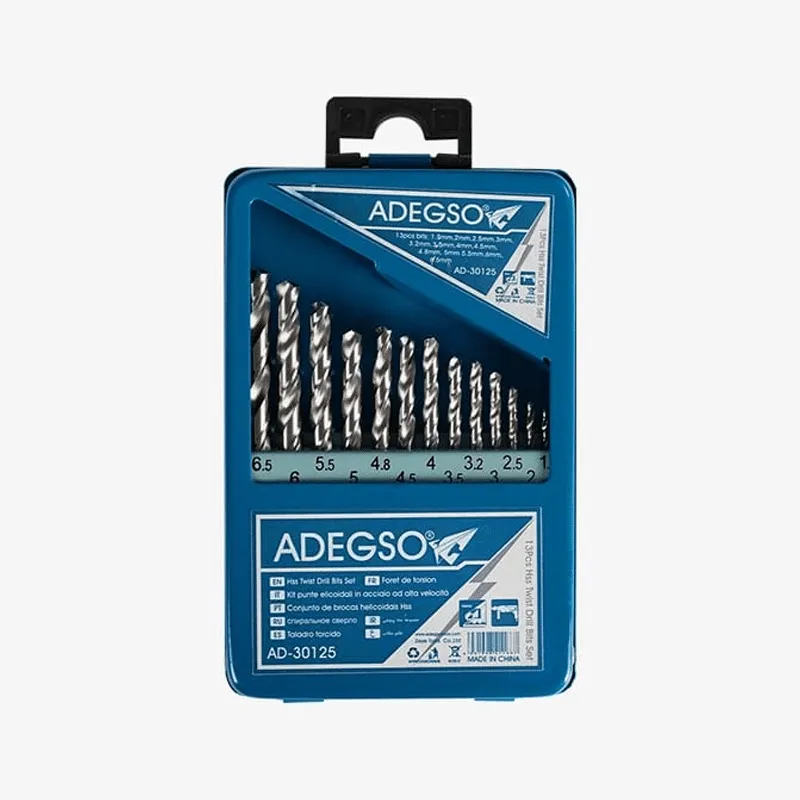 13pcs bits: 1.5mm, 2mm, 2.5mm, 3mm, 3.2mm, 3.5mm, 4mm, 4.5mm, 4.8mm, 5mm, 5.5mm, 6mm, 6.5mm;